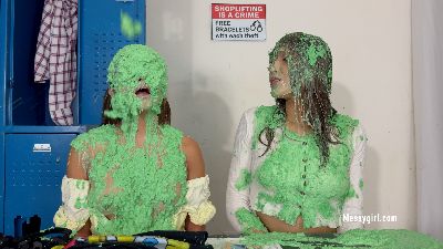 Our That's So 90's series continues with two more slime scenes. The first scene has Zoey and Santana as snobby cheerleaders who get slimed in the locker room. The second scene has Celeste and Santana as two shoplifters who must choose between jail or being slimed.